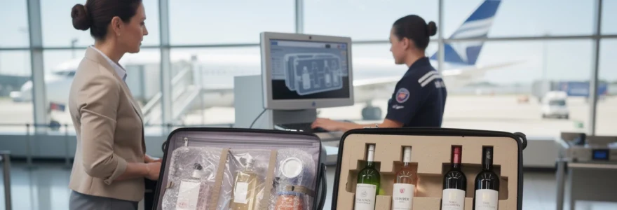 En soute, les bouteilles de vin et d’alcool ne sont pas limitées par la règle des 100 ml, mais par les restrictions douanières et par la politique de la compagnie aérienne en matière de produits dangereux (alcool élevé à plus de 70 %, par exemple). Vous devez également respecter les franchises pour l’alcool à l’arrivée dans le pays de destination, sous peine de taxes ou de confiscation. Sur le plan pratique, les bouteilles en verre doivent être emballées individuellement, de préférence dans des housses gonflables ou des étuis spécialisés pour le transport de vin en avion, puis calées au centre de la valise.