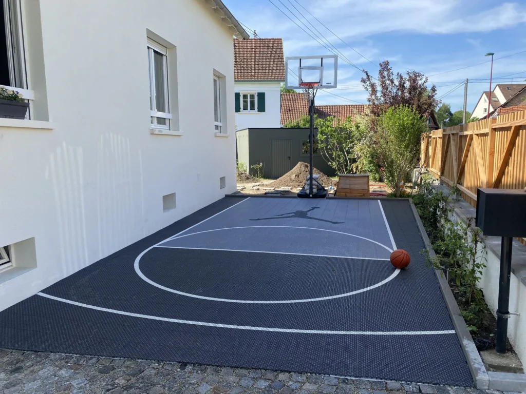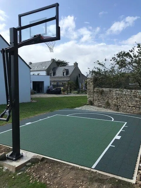 Outre les lignes réglementaires (raquette, lancers francs, 3 points), vous pouvez profiter de cette étape pour personnaliser votre terrain : numéros de zones pour les exercices, logo central, initiales de la famille ou couleurs inspirées de votre franchise NBA préférée. Pourquoi ne pas créer une « signature visuelle » qui fera de votre terrain un lieu unique, immédiatement reconnaissable sur les photos de matchs entre amis ? Veillez simplement à conserver un bon contraste entre la couleur du revêtement et celle des lignes, afin de garantir une lisibilité parfaite même à la tombée de la nuit.