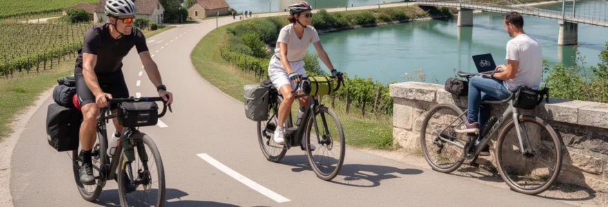 Le choix du vélo détermine largement votre confort. Pour un séjour de plusieurs jours, trois grandes familles dominent : le vélo de randonnée classique, robuste, avec porte-bagages et position droite ; le gravel, plus sportif, capable d’alterner routes et chemins ; et le VAE, qui ouvre les reliefs à des publics très variés. Le bikepacking (sacs fixés au cadre, à la tige de selle et au cintre) séduit pour sa légèreté et sa simplicité, surtout sur des itinéraires mixtes.