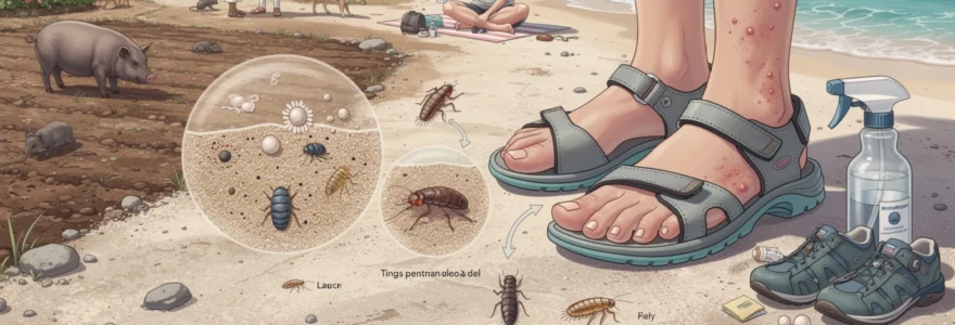Marcher pieds nus sur le sable chaud, profiter des anses sauvages du Sud ou des longues plages du Carbet fait partie des joies d’un séjour en Martinique. Pourtant, un ennemi minuscule peut transformer cette parenthèse en véritable calvaire : la puce de sable tropicale Tunga penetrans. Ce parasite, responsable de la tungose, s’attaque surtout aux pieds et peut provoquer des lésions douloureuses, parfois graves si aucune mesure n’est prise. Comprendre son cycle de vie, repérer les zones à risque et adopter des réflexes de prévention adaptés au climat tropical humide permet de sécuriser vos vacances comme votre quotidien sur l’île, que vous soyez résident ou simple visiteur de passage.